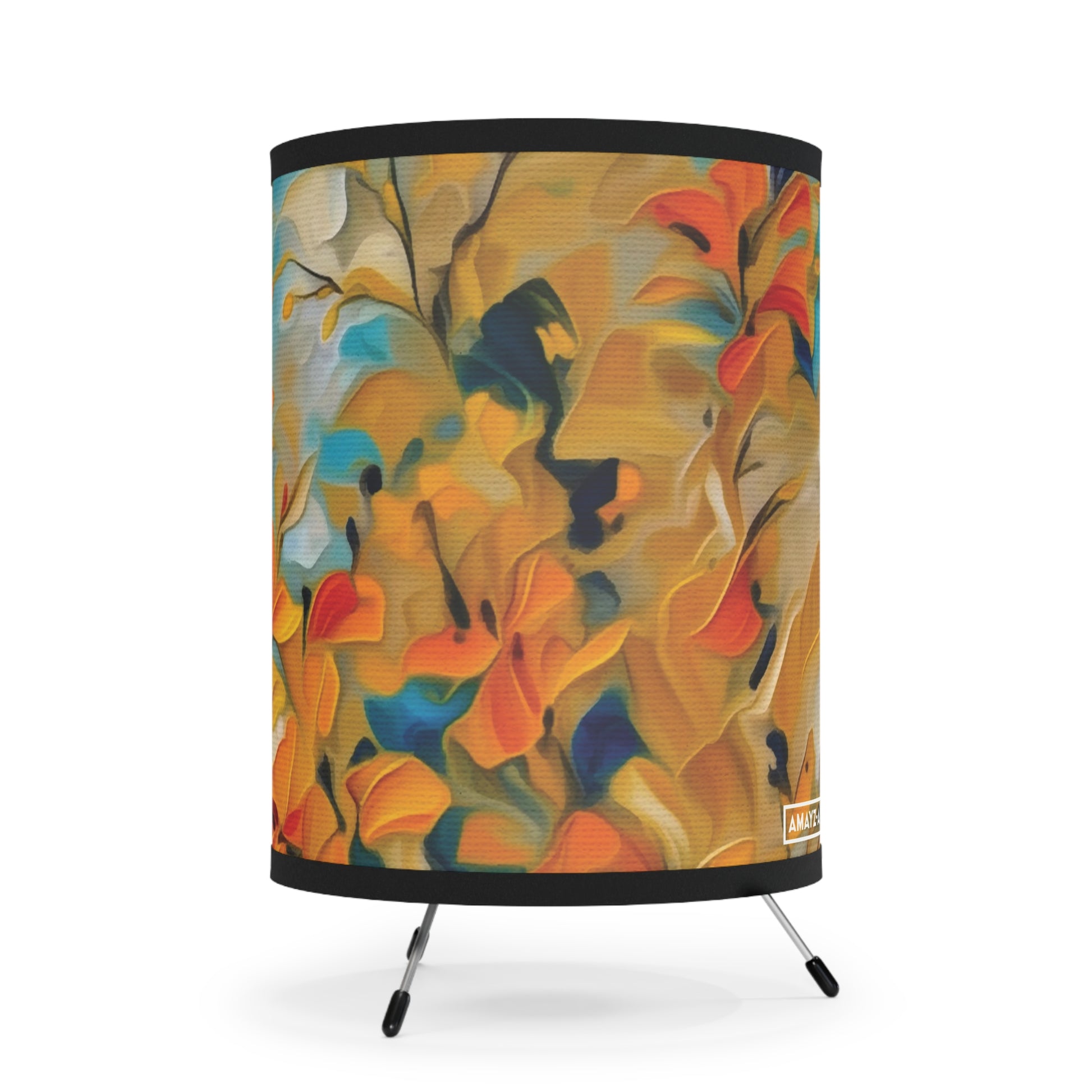 Tripod lamp with art by Pam Brown. Featuring a galvanized steel tripod base, this lamp delivers both high-end durability and a unique decorative touch. The custom printed lamp shades can accommodate high-resolution custom prints and add your personality to your surroundings. The lamp features a type A plug with two pins, which makes it suitable for the sockets used in the USA and Canada.