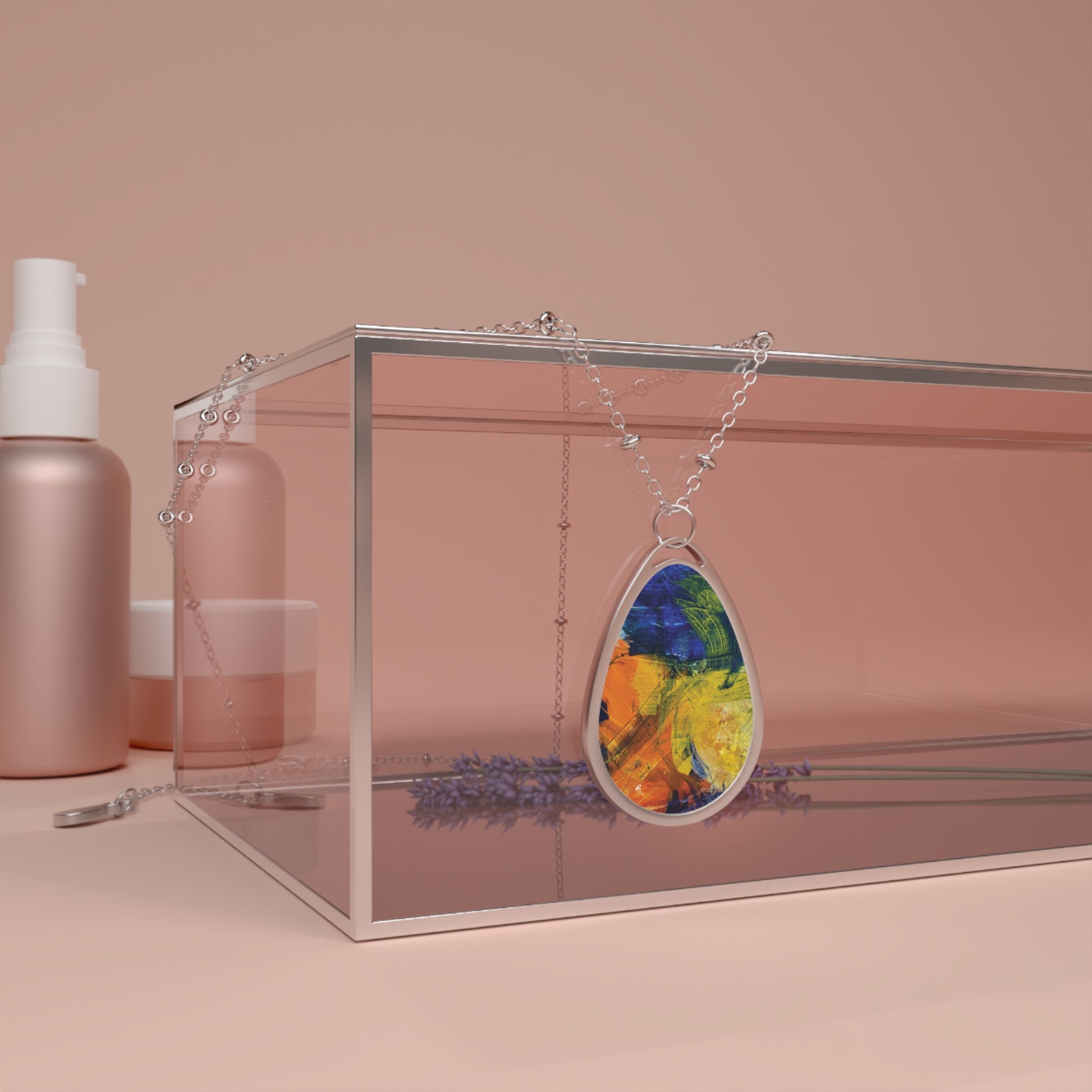 Pendant oval necklace featuring art by Alex May. Add an artistic touch to what you're wearing. This unique art pendant and its chain are made with a robust zinc alloy for dazzling looks that are long-lasting. The print panel is made with aluminum while the pendant itself comes in a unique shape of an ellipse.