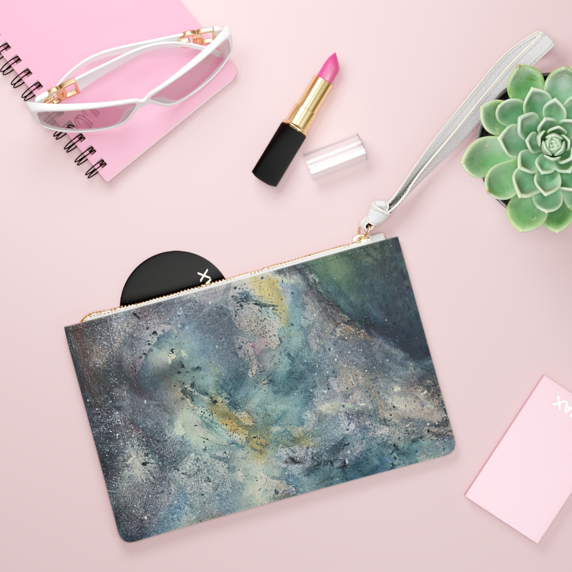 Designed with a loop handle to quickly free your hands, this artistic clutch bag is made for the fashionista on the go. It can hold everyday essentials such as a phone, wallet, and keys. It features a zip fastening and a fully lined internal pocket. It is made of vegan leather in the Saffiano pattern finish that was invented by Prada.
